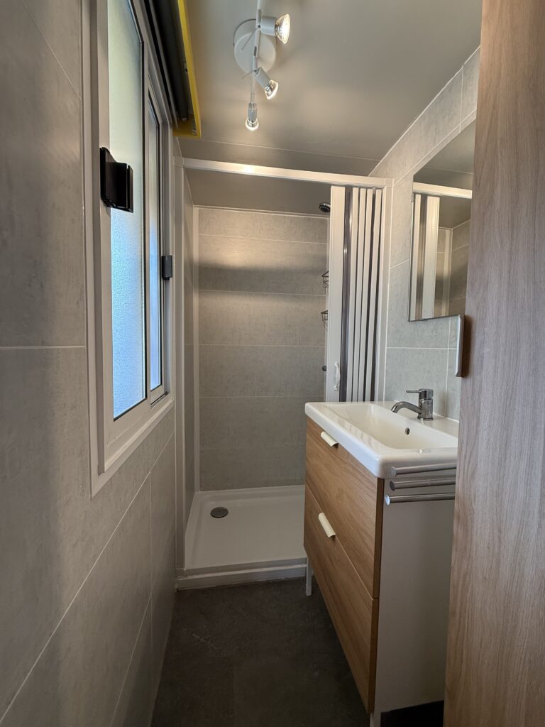 De badkamer is praktisch en comfortabel, met een verfrissende douche en wastafelmeubel, ideaal om jezelf weer op te frissen na een actieve dag in de Toscaanse zon. Daarnaast beschikt de accommodatie over een apart toilet.