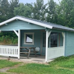 Trekkershut met veranda op Camping Sudersé; comfortabel overnachten in het Friese groen, vlak bij het IJsselmeer