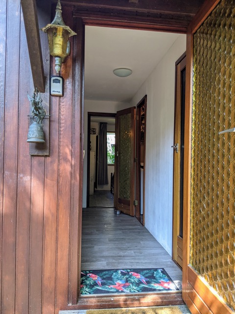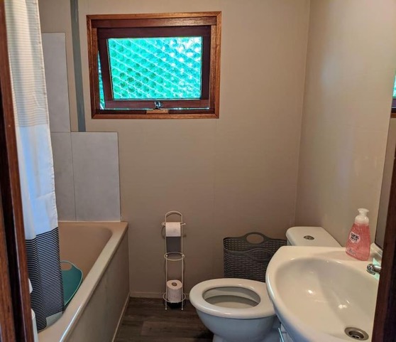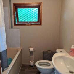 De chalet beschikt daarnaast over een badkamer met douche, wastafel en toilet – alles wat je nodig hebt voor een comfortabel verblijf.