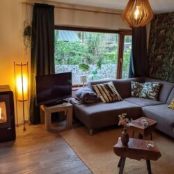 Koken is een plezier in de volledig uitgeruste keuken, waar je ’s ochtends een lekker eitje kunt bakken of ’s avonds samen geniet van een gezellig diner. De woonkamer is knus en uitnodigend, perfect om samen te ontspannen.