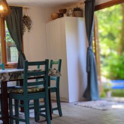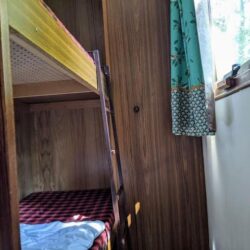 De accommodatie is van alle gemakken voorzien en ideaal voor gezinnen of kleine gezelschappen. Er zijn twee comfortabele slaapkamers: één met een tweepersoonsbed en één met een stapelbed – perfect voor een goede nachtrust na een dag vol ontspanning of avontuur.