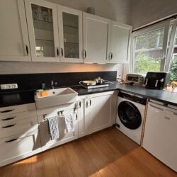 Koken is een plezier in de volledig uitgeruste keuken, waar je ’s ochtends een lekker eitje kunt bakken of ’s avonds samen geniet van een gezellig diner. De woonkamer is knus en uitnodigend, perfect om samen te ontspannen.