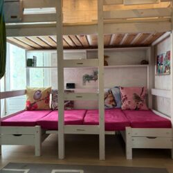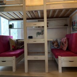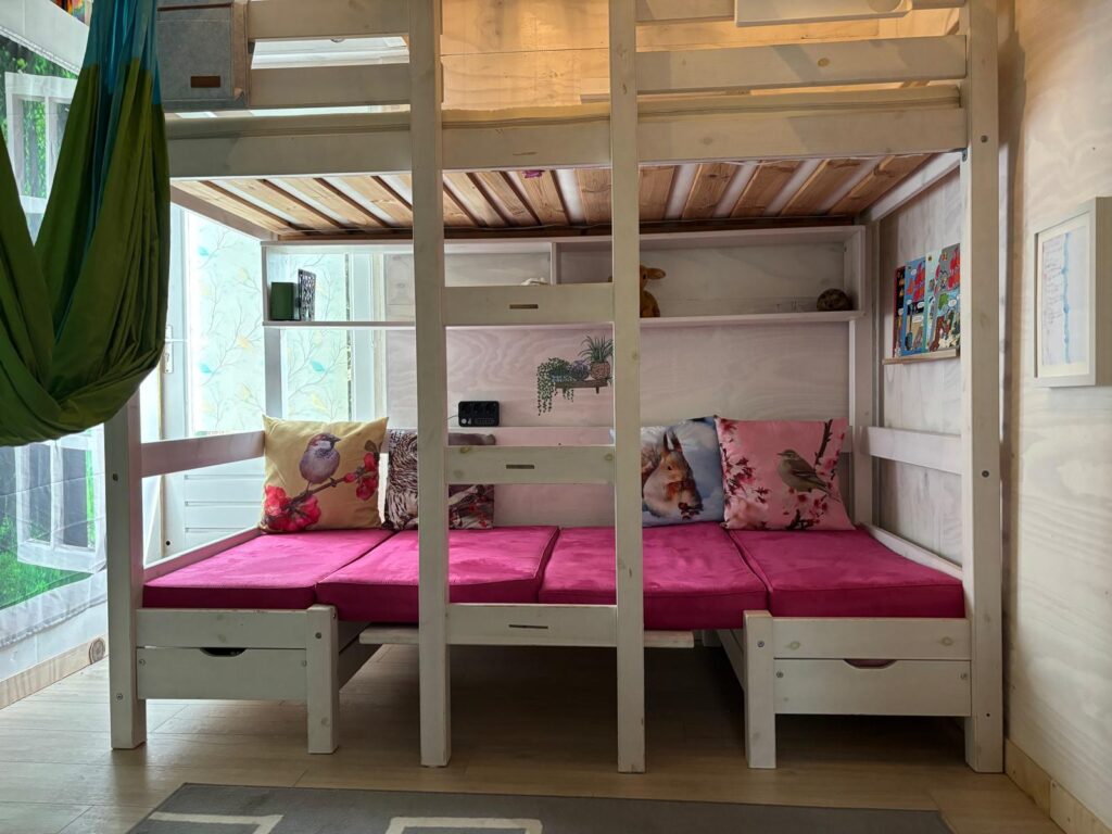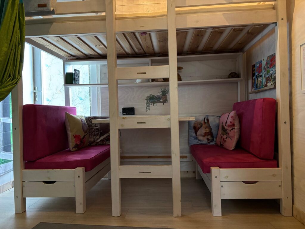 De accommodatie is van alle gemakken voorzien en ideaal voor gezinnen of kleine gezelschappen. Er zijn twee comfortabele slaapkamers: één met een tweepersoonsbed en één met een stapelbed – perfect voor een goede nachtrust na een dag vol ontspanning of avontuur.