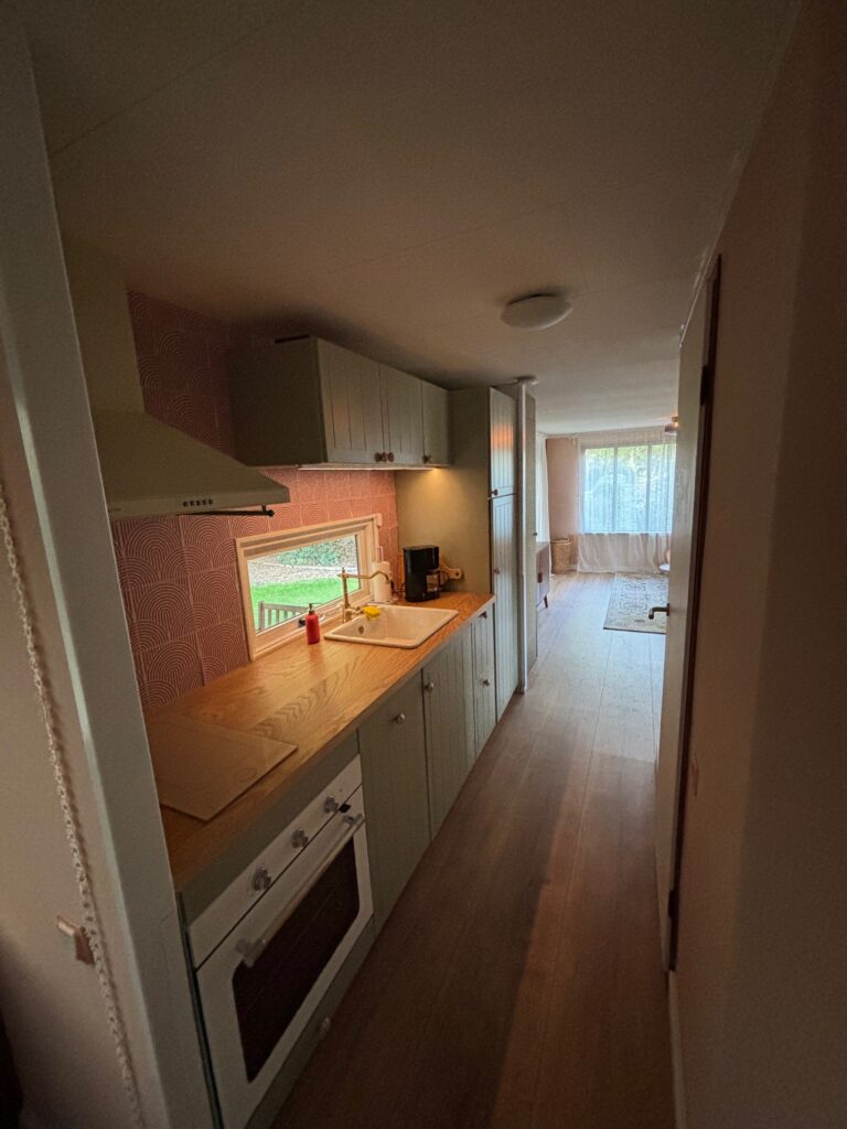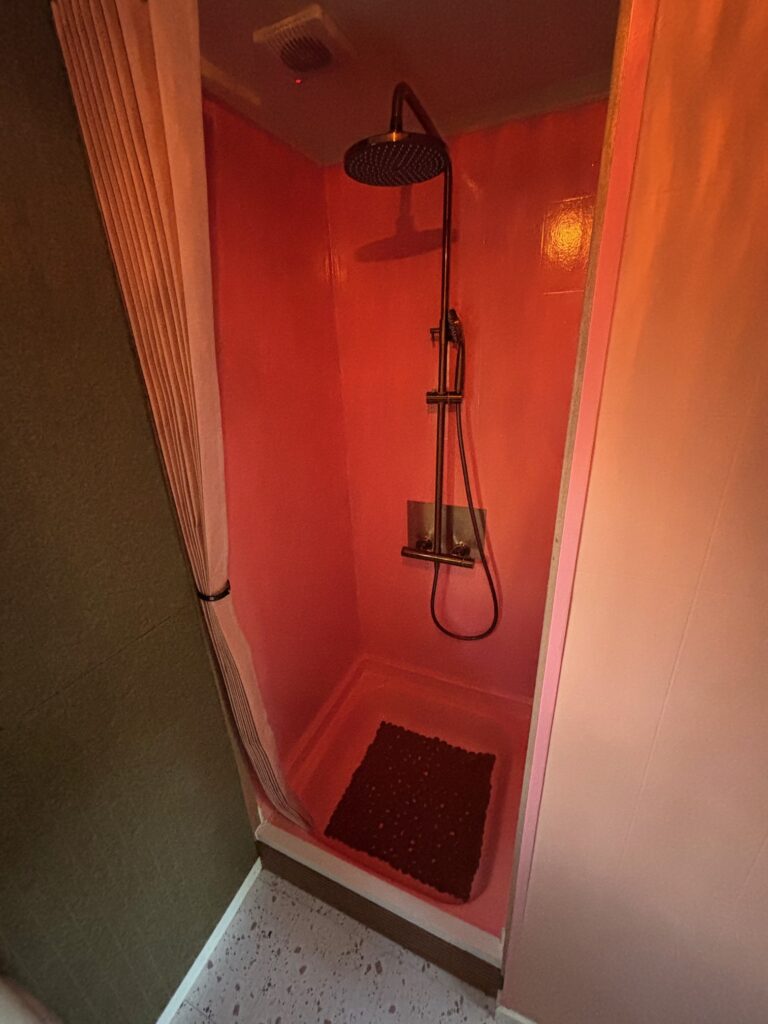 De accommodatie beschikt daarnaast over een badkamer met douche, wastafel en toilet – alles wat je nodig hebt voor een comfortabel verblijf.