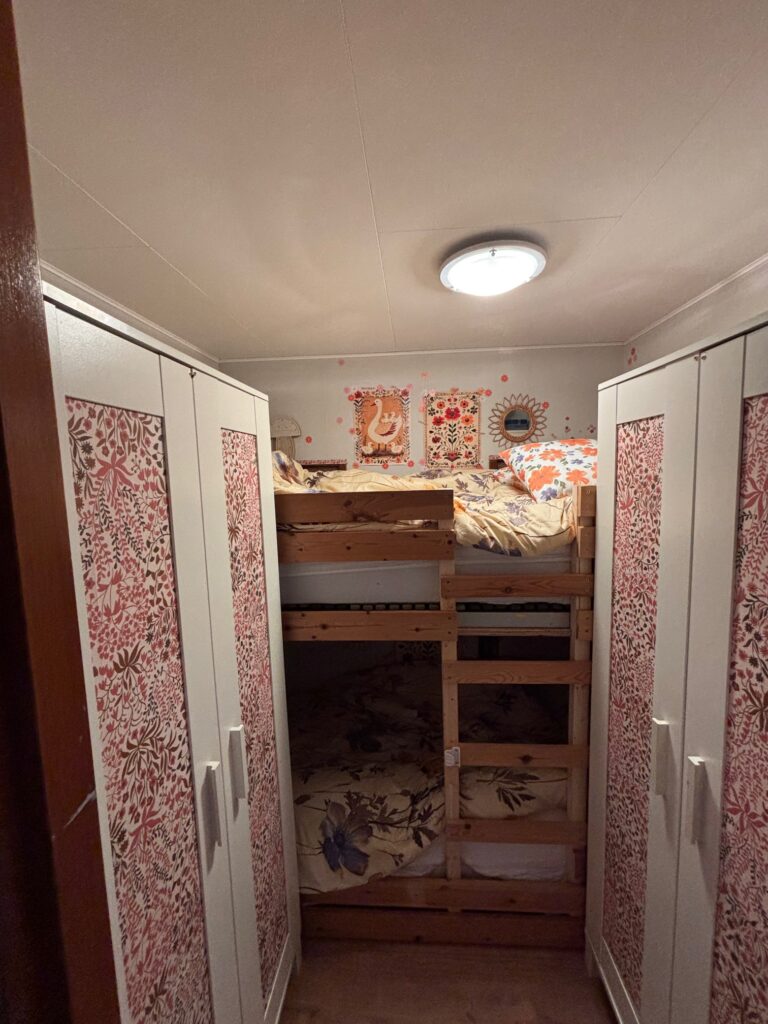 De accommodatie is van alle gemakken voorzien en ideaal voor gezinnen of kleine gezelschappen. Er zijn twee comfortabele slaapkamers: één met een tweepersoonsbed en één met een stapelbed – perfect voor een goede nachtrust na een dag vol ontspanning of avontuur.