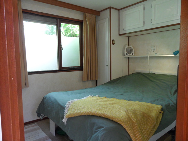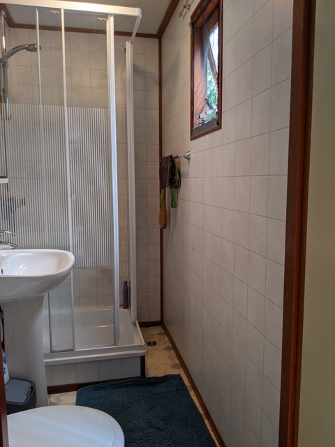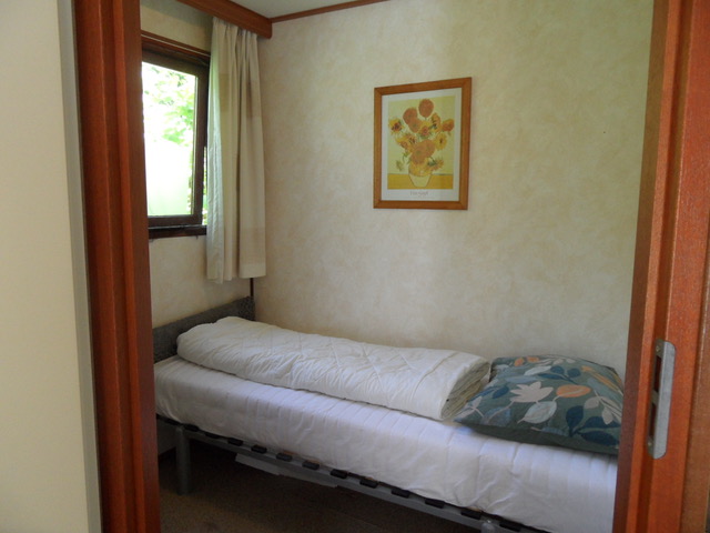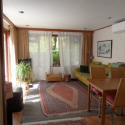 De chalet beschikt daarnaast over een badkamer met douche, wastafel en toilet – alles wat je nodig hebt voor een comfortabel verblijf.