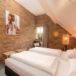 De accommodatie beschikt over acht comfortabele tweepersoonskamers, waarvan vier kamers voorzien zijn van een eigen wastafel voor extra gemak. Alle slaapkamers zijn uitgerust met luxe boxspringbedden en bieden voldoende ruimte voor een goede nachtrust. De woning heeft twee badkamers met inloopdouche, wastafel en toilet, plus twee extra aparte toiletten op de begane grond.