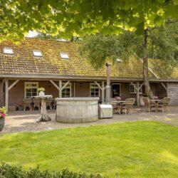 Buiten is er alle ruimte om te ontspannen en te spelen. Het ruime (deels overdekte) terras biedt een prachtig uitzicht en een fijne plek om samen te zitten, ook bij minder goed weer. In de tuin kunnen kinderen zich uitleven op de trampoline, schommels, het klimparcours en het speelveld. Er is daarnaast een overdekte speelruimte met onder andere airhockey, tafeltennis en poolbiljart.