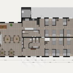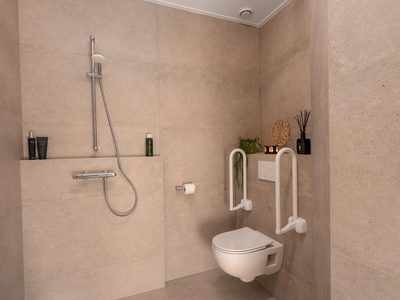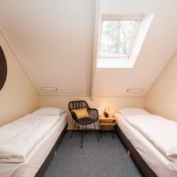 De accommodatie is ruim opgezet en geschikt voor grote gezelschappen tot 40 personen. Er zijn 14 slaapkamers met in totaal 35 comfortabele boxspringbedden. Zes slaapkamers bevinden zich op de begane grond en acht tweepersoonskamers op de eerste verdieping. Het sanitair is eveneens volledig vernieuwd en bestaat uit 8 toiletten, 5 douches en 9 wastafels. Daarnaast is er een aangepaste douche- en toiletruimte aanwezig en is de begane grond volledig rolstoeltoegankelijk.