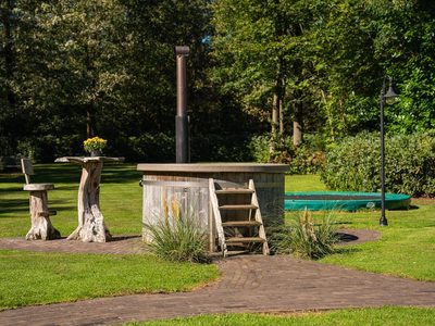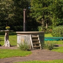 Buiten is er een royale tuin met eigen terras, tuinmeubilair, trampoline, Finse kota en optioneel een privé hottub. Kinderen kunnen zich eindeloos vermaken met het klimparcours, schommels, wipwap, vogelnestschommel, tafeltennistafel en de vele stepjes, fietsjes en skelters.