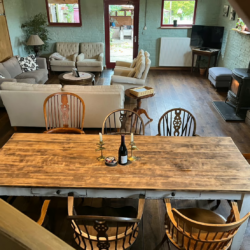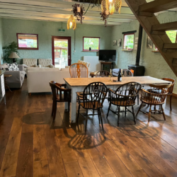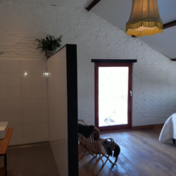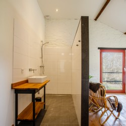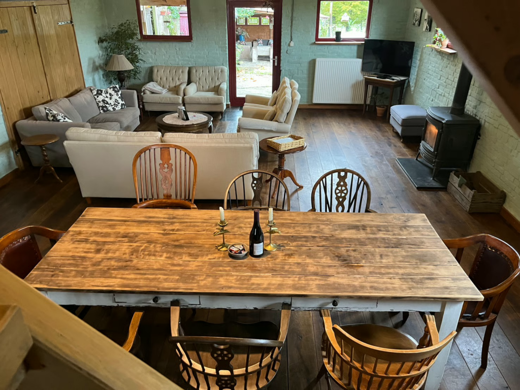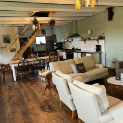 Binnen ademt De Stal een authentieke, landelijke sfeer. De robuuste houten balken, natuurlijke materialen en warme kleuren zorgen voor een huiselijke uitstraling. Het verblijf is ruim opgezet en ideaal voor families, vriendengroepen of gasten die graag samen genieten van een ontspannen tijd in de natuur. De woonkamer is een fijne plek om samen te komen, terwijl de keuken volledig is ingericht voor gezellige maaltijden na een dag wandelen of fietsen.