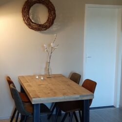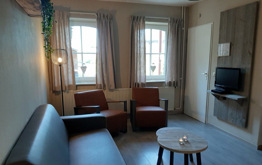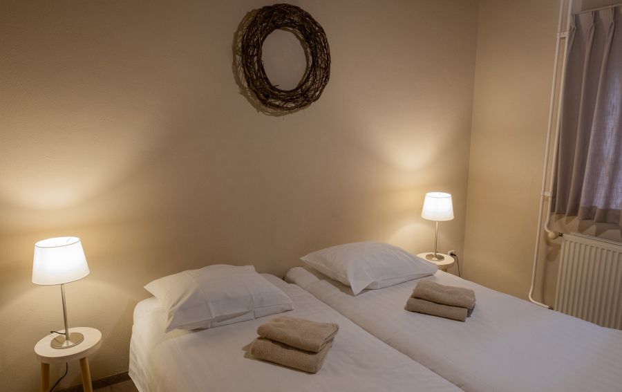 Binnen vind je een sfeervol ingericht appartement met alle voorzieningen voor een aangenaam verblijf. De woonruimte is warm en gezellig. Beide slaapkamers beschikken over twee eenpersoonsbedden. Daarnaast beschikt jullie eigen badkamer over een douche, wasbak en een toilet.