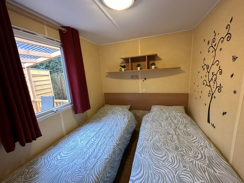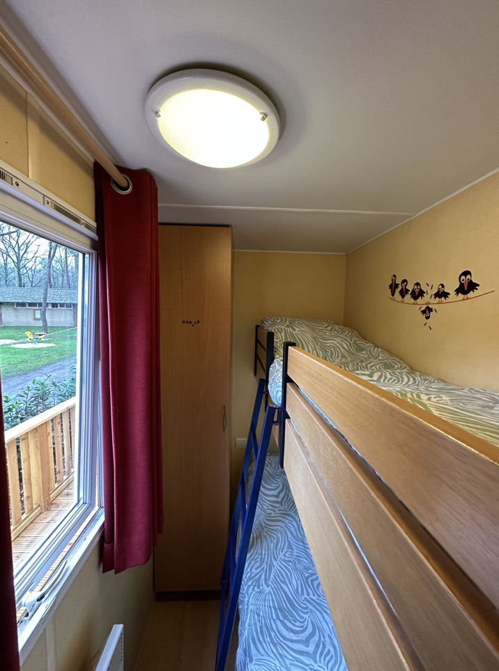 Het chalet beschikt over drie comfortabele slaapkamers: één slaapkamer met een tweepersoonsbed, één slaapkamer met twee aparte bedden en een slaapkamer met een stapelbed. Voor alle slaapplaatsen liggen eenpersoonsdekbedden en kussens klaar.