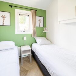 Velthorst 4 – licht, comfortabel en van alle gemakken voorzien Velthorst 4 staat bekend om zijn grote raampartijen en frisse, lichte interieur. Dit vrijstaande, gelijkvloerse chalet is geschikt voor maximaal 4 personen en biedt alles voor een ontspannen verblijf. In de gezellige woonkamer vind je een comfortabele zithoek met televisie, een eethoek en een compleet uitgeruste keuken met onder andere een vaatwasser, combimagnetron en koffiezetapparaat. Het chalet beschikt over 2 slaapkamers, beide ingericht met 2 eenpersoonsbedden. De badkamer is voorzien van een douchecabine, wastafel en toilet. Via de schuifpui in de woonkamer stap je zo het aangrenzende terras op, waar het tuinmeubilair al voor je klaarstaat. Je kunt 1 auto bij het chalet parkeren en gebruikmaken van gratis Wi-Fi. Knus chalet voor 4 personen op vakantiepark aan de Maas – geniet van comfort, gezelligheid en de rust van de natuur.