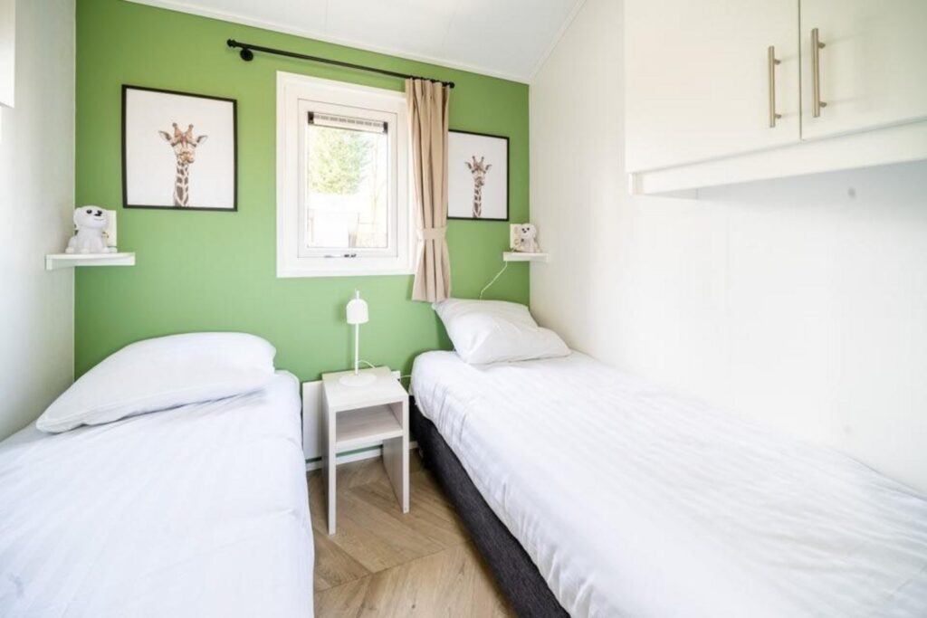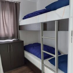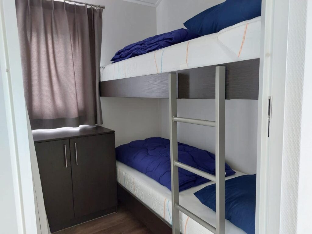Het chalet telt 3 slaapkamers: 2 met elk twee eenpersoonsbedden en 1 met een stapelbed. De badkamer is voorzien van een douchecabine, wastafel en toilet. Buiten geniet je van een riante tuin met gemeubileerd terras – ideaal om tot rust te komen in de buitenlucht.