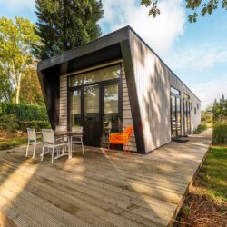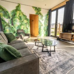 Ervaar rust en comfort in de Just Nature 4 lodge op Vakantiepark aan de Maas – een modern en duurzaam verblijf voor 4 personen, midden in het groen.