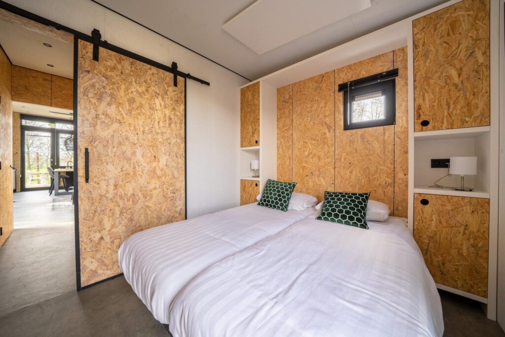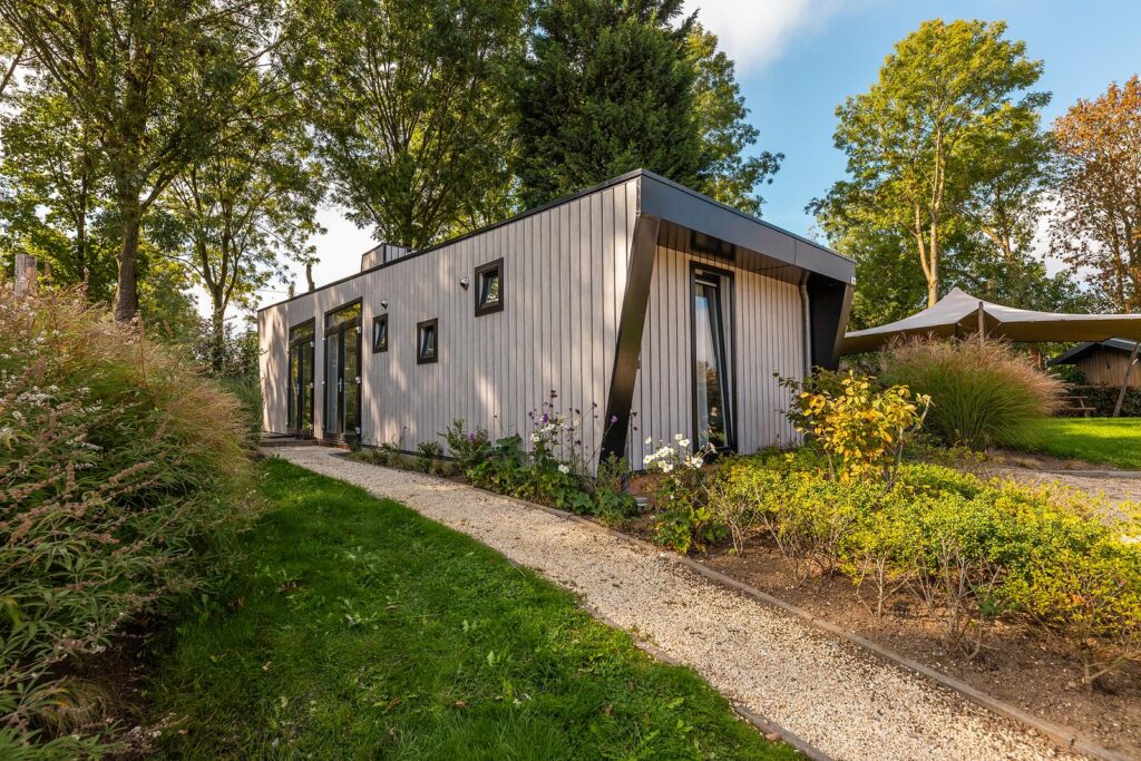 Ervaar rust en comfort in de Just Nature 4 lodge op Vakantiepark aan de Maas – een modern en duurzaam verblijf voor 4 personen, midden in het groen.