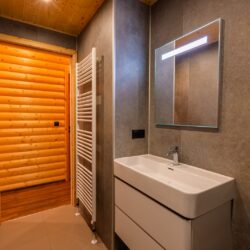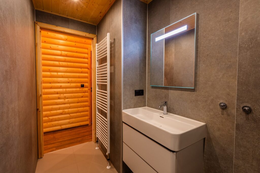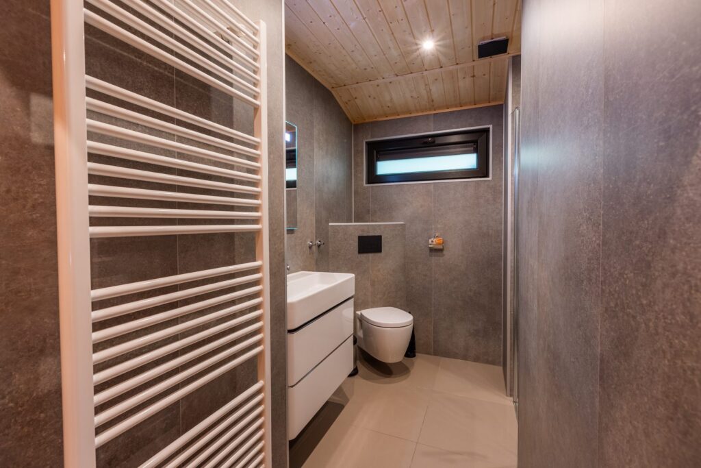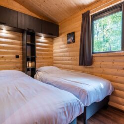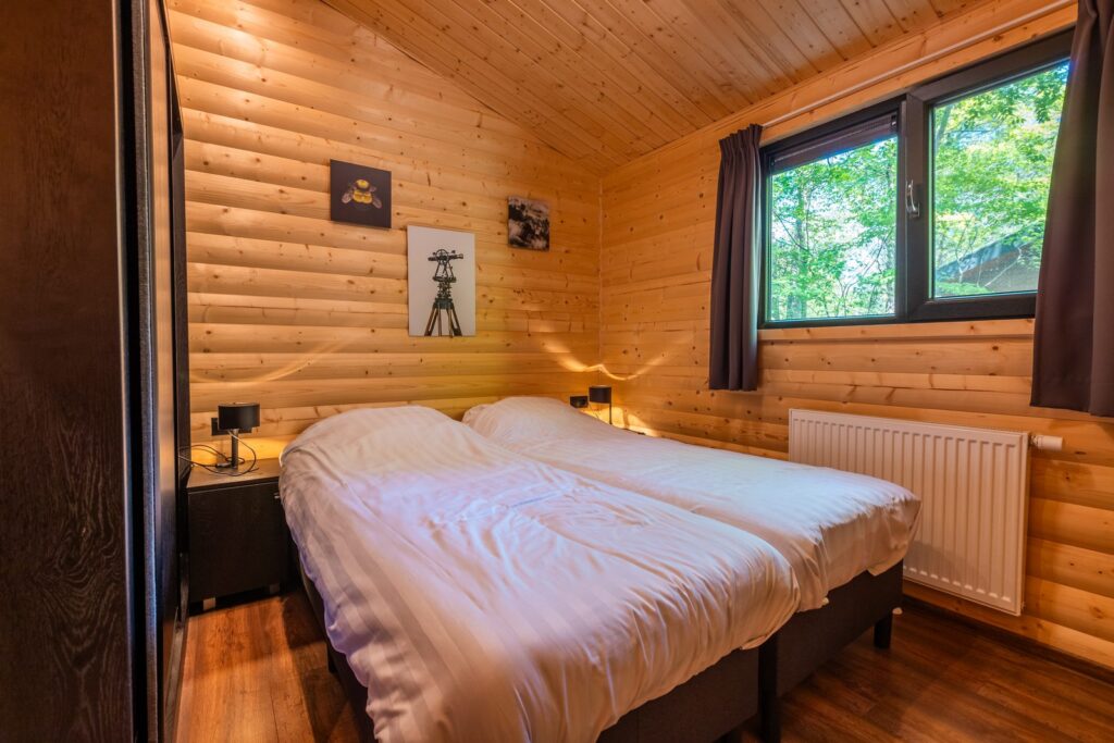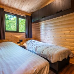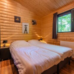 Het chalet heeft drie comfortabele slaapkamers, elk met twee eenpersoonsbedden. De badkamer is modern en van alle basisvoorzieningen voorzien: een toilet, douche en wastafel. Handig is ook het aparte tweede toilet.