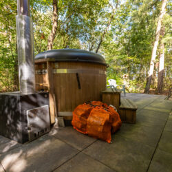 Als je gebruik wilt maken van de hottub, dien je bij de receptie een aanmaakpakket met 4 zakken hout aan te schaffen – het is niet toegestaan om ander hout te gebruiken. Voor het verwarmen van de hottub zijn minimaal 4 zakken nodig. Houd er rekening mee dat het vullen en opwarmen ongeveer 4 tot 6 uur duurt. De hottub moet je zelf vullen én voor vertrek weer leegmaken.