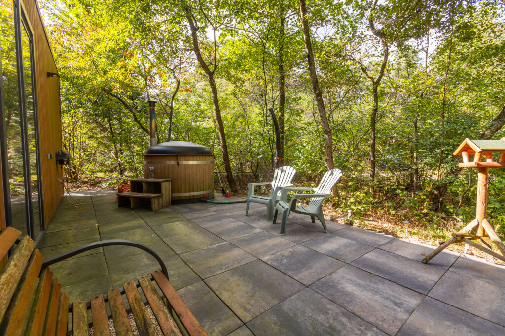 Buiten geniet je volop van de rust op je eigen terras met tuinmeubilair én… een hottub! Een heerlijke plek om te relaxen in de buitenlucht.