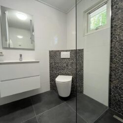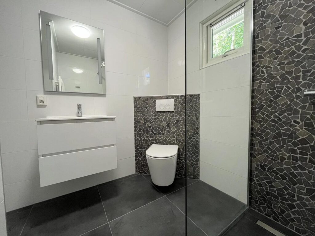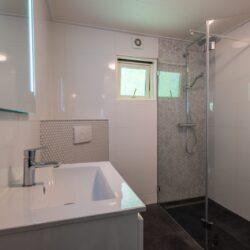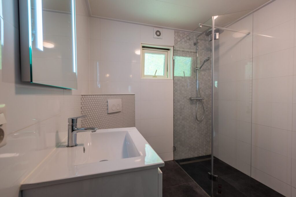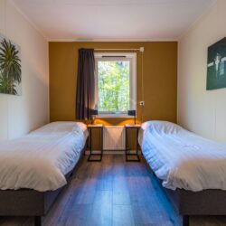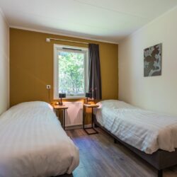 Het chalet beschikt over drie comfortabele slaapkamers, elk met twee eenpersoonsbedden. De badkamer is voorzien van een douche en wastafel, en er is een apart toilet aanwezig.