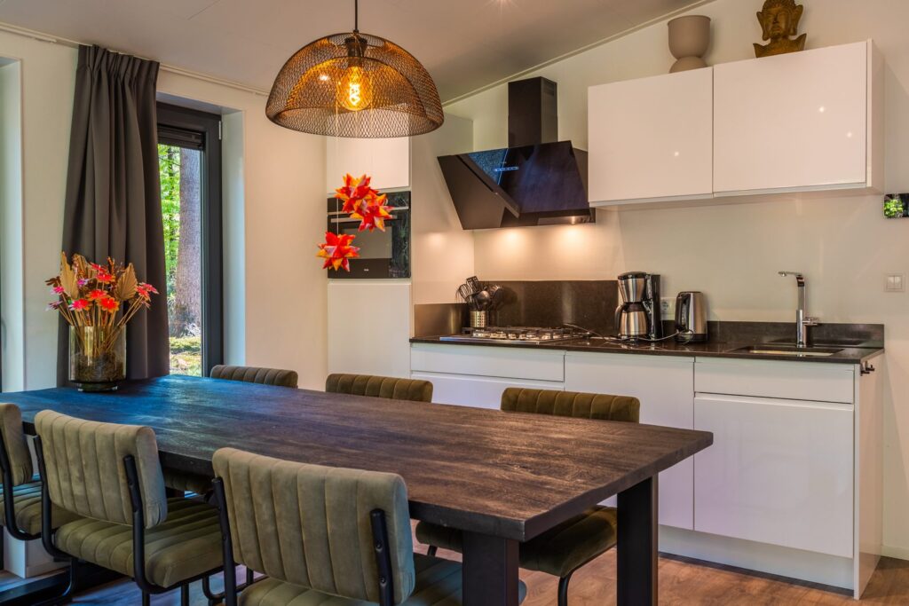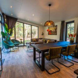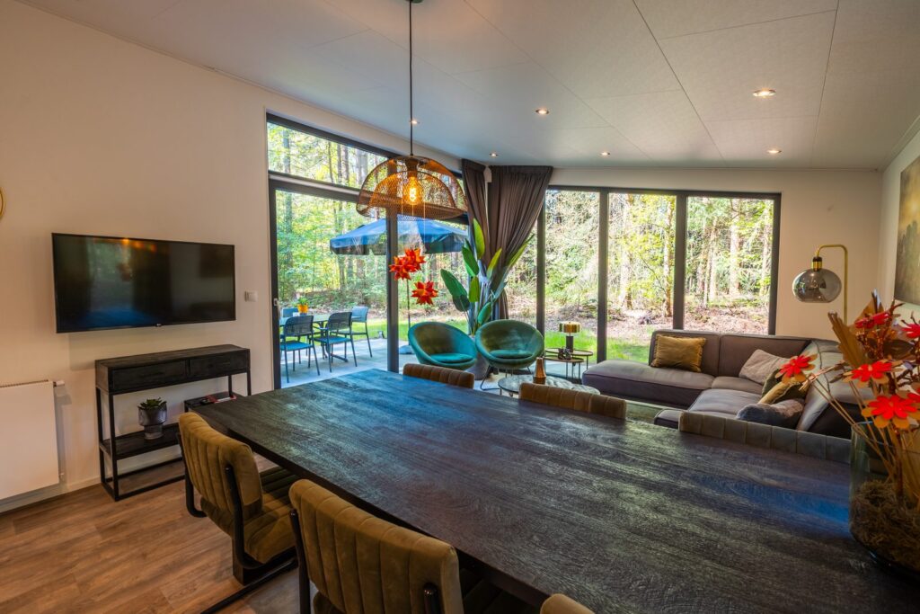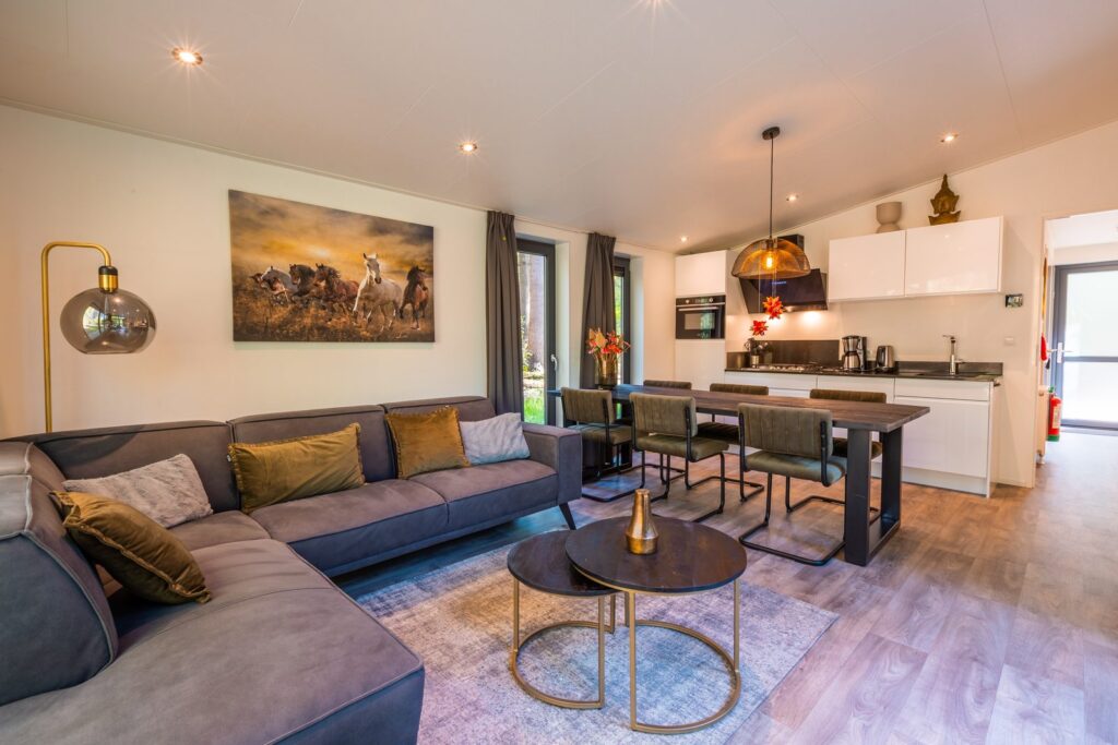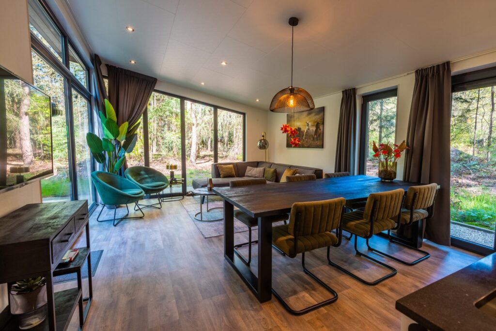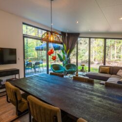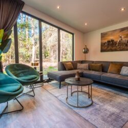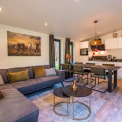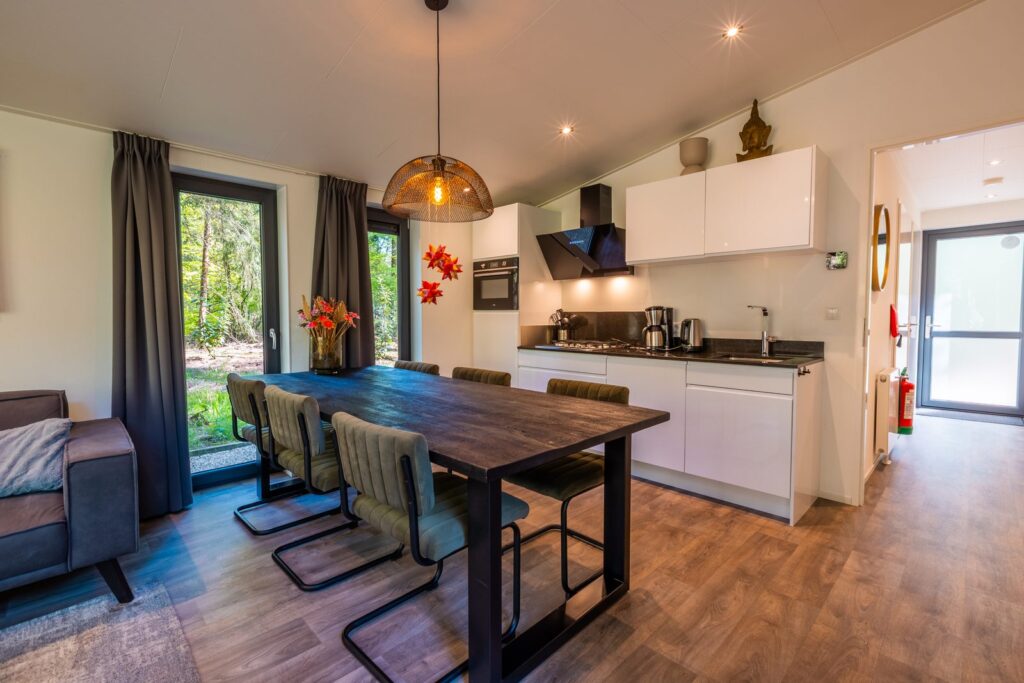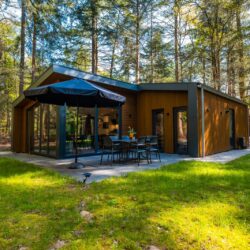 Zandborg Lodge is een modern, gelijkvloers en vrijstaand chalet dat ruimte biedt aan 6 personen – perfect voor gezinnen of vriendengroepen die comfort en stijl weten te waarderen.