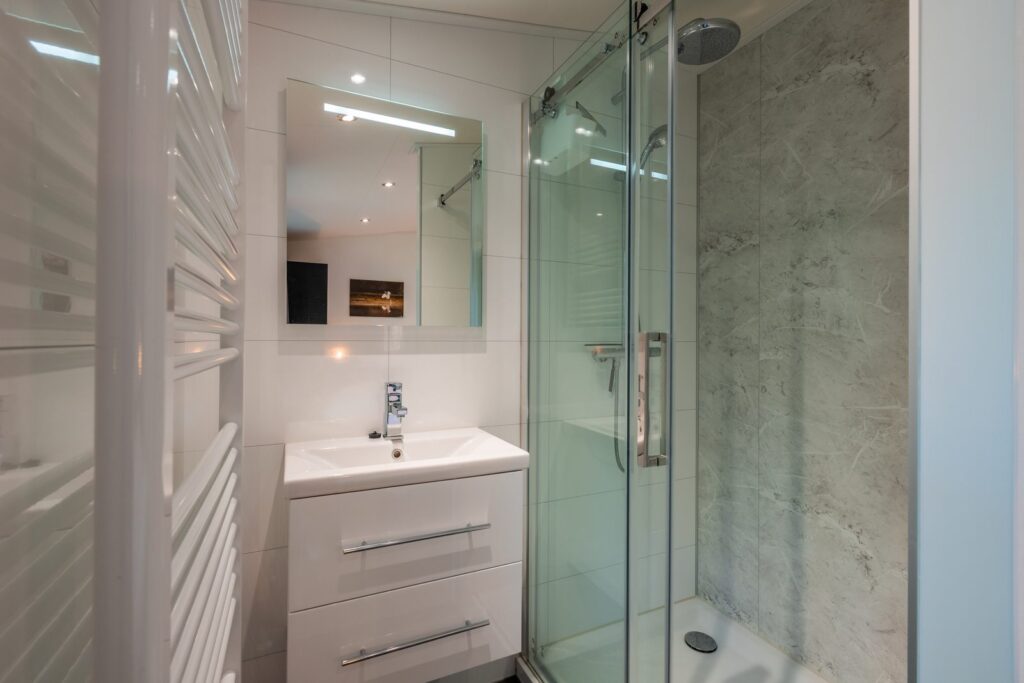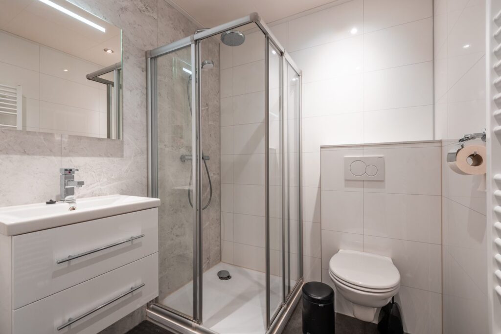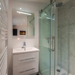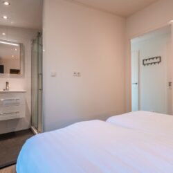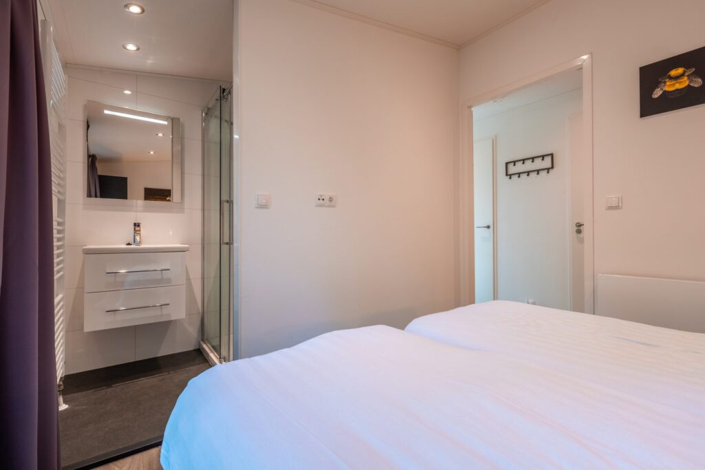 De woning beschikt over drie slaapkamers, elk met twee comfortabele eenpersoonsbedden. Er zijn twee luxe badkamers, beide met een heerlijke regendouche, én er is een apart toilet aanwezig – extra fijn als je met meerdere mensen bent.