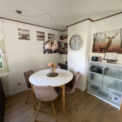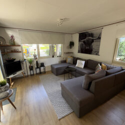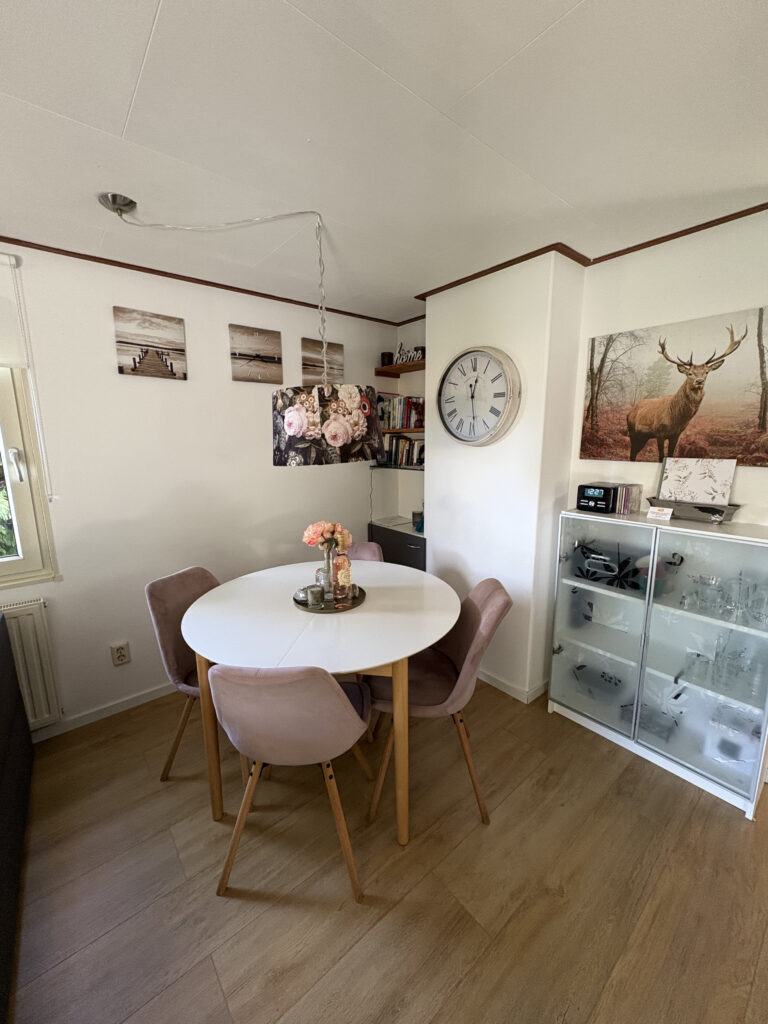 De woonkamer van dit chalet heeft een bank met voldoende ruimte. Daarnaast vind je hier ook een eettafel met genoeg ruimte om aan te ontbijten, dineren, of ’s avonds een gezelschapsspel te spelen.