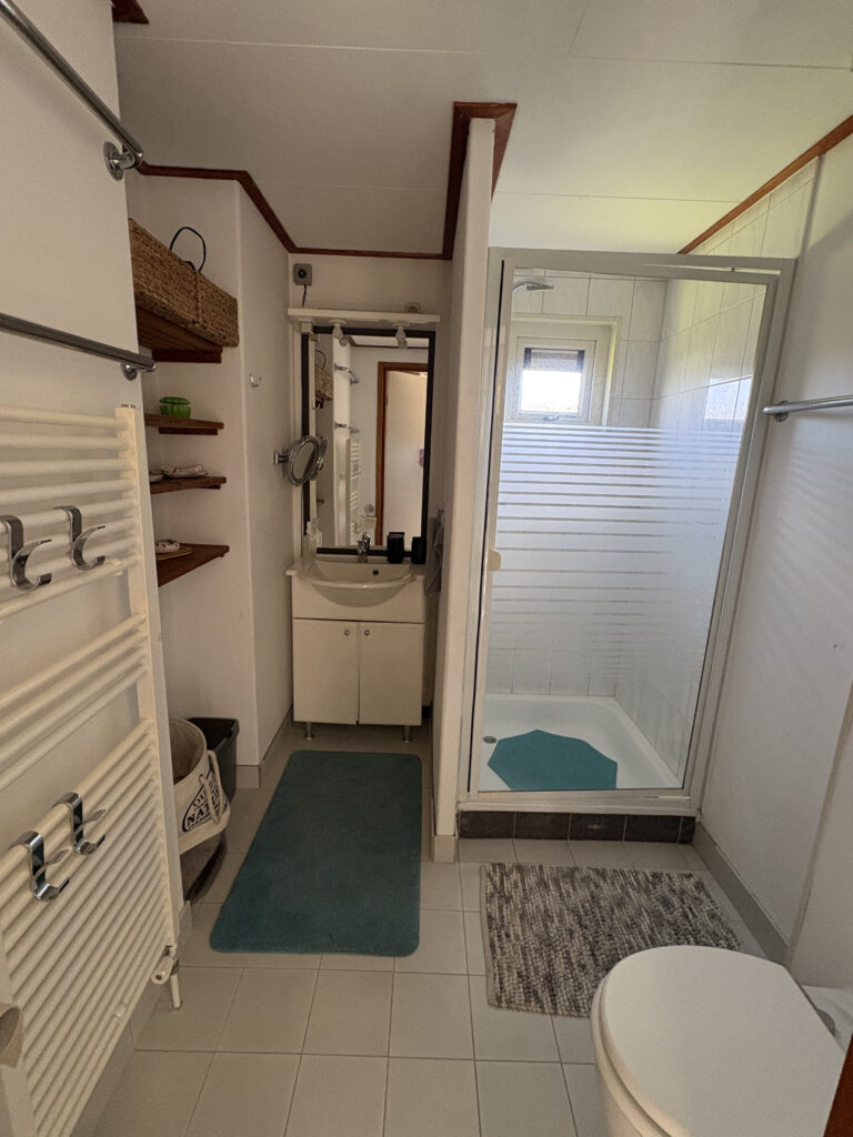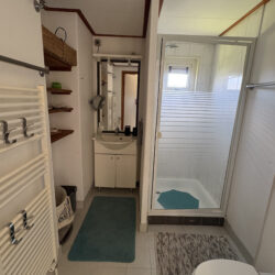 Spoel je na een dag buiten af onder de comfortabele douche. In de badkamer vind je daarnaast ook een wastafel en een toilet.