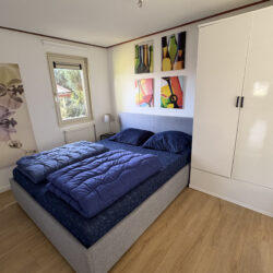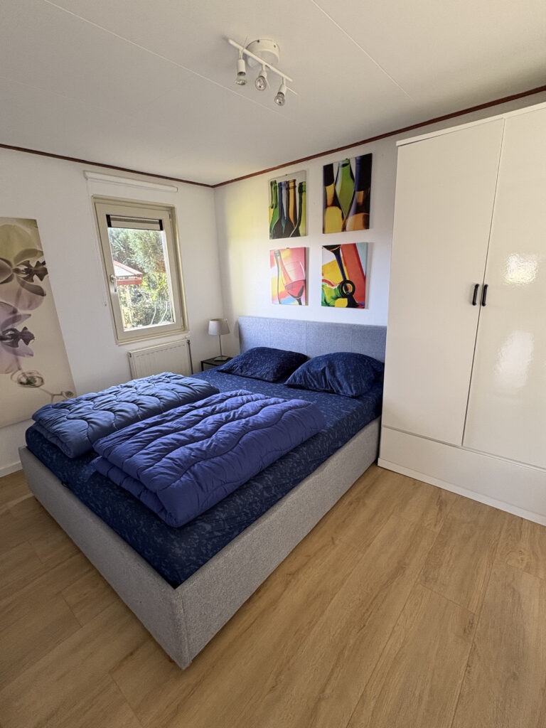 Na een lange dag in de buitenlucht rust je weer helemaal uit in een van de bedden. Dit chalet heeft 1 slaapkamer met een tweepersoonsbed. Bespreek de mogelijkheden tot meer slaapplaatsen in dit chalet met EEZZ.
