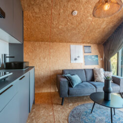 Een stijlvol ingericht tiny house met verrassend veel comfort, perfect voor een ontspannen vakantie in de natuur met z’n vieren.