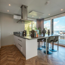 De moderne keuken is van alle gemakken voorzien, met onder andere een koel-vriescombinatie, magnetron, oven, vaatwasser, waterkoker en koffiezetapparaat – ideaal voor wie graag zelf kookt.