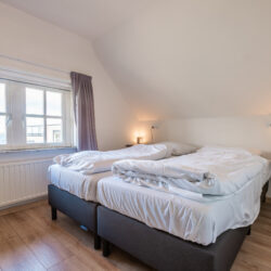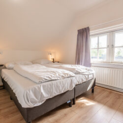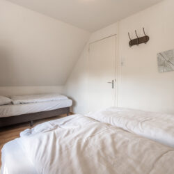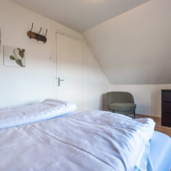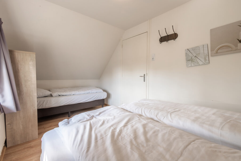 Op de bovenverdieping zijn twee slaapkamers: Eén slaapkamer met drie losse bedden. Eén slaapkamer met twee losse bedden.