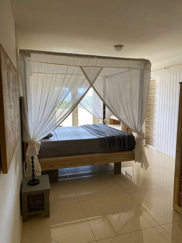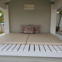 De villa beschikt over drie ruime slaapkamers met airconditioning, waarvan twee luxe masterbedrooms en een grote slaapkamer met twee losse bedden. De moderne keuken is volledig uitgerust met oven, magnetron, vaatwasser, gaskookplaat met wokbrander en een Amerikaanse koelkast met ijsblokjes en koelwater. Op de begane grond vindt u een comfortabele woonkamer met 65″ TV, inclusief Nederlandse zenders, Netflix en YouTube.