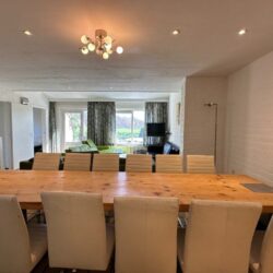 Mit sechs Schlafzimmern und drei Badezimmern ist der Bungalow geräumig, sodass Privatsphäre und Komfort für alle Gäste garantiert sind. Das Wohnzimmer ist hell und gemütlich eingerichtet, und die offene Küche ist mit allen Annehmlichkeiten ausgestattet, darunter ein Geschirrspüler, eine Mikrowelle und ein großer Esstisch. So wird das gemeinsame Kochen und Essen zu einem angenehmen Erlebnis.