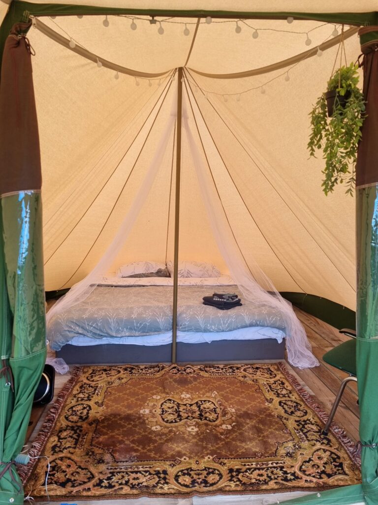 Ein stimmungsvolles Zelt, in dem du endlos Ruhe, Einfachheit und das Leben in der Natur genießen kannst.