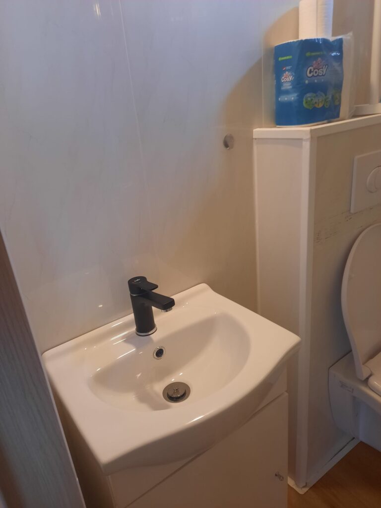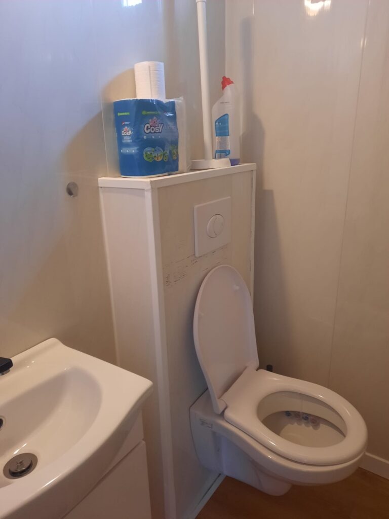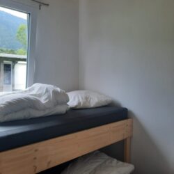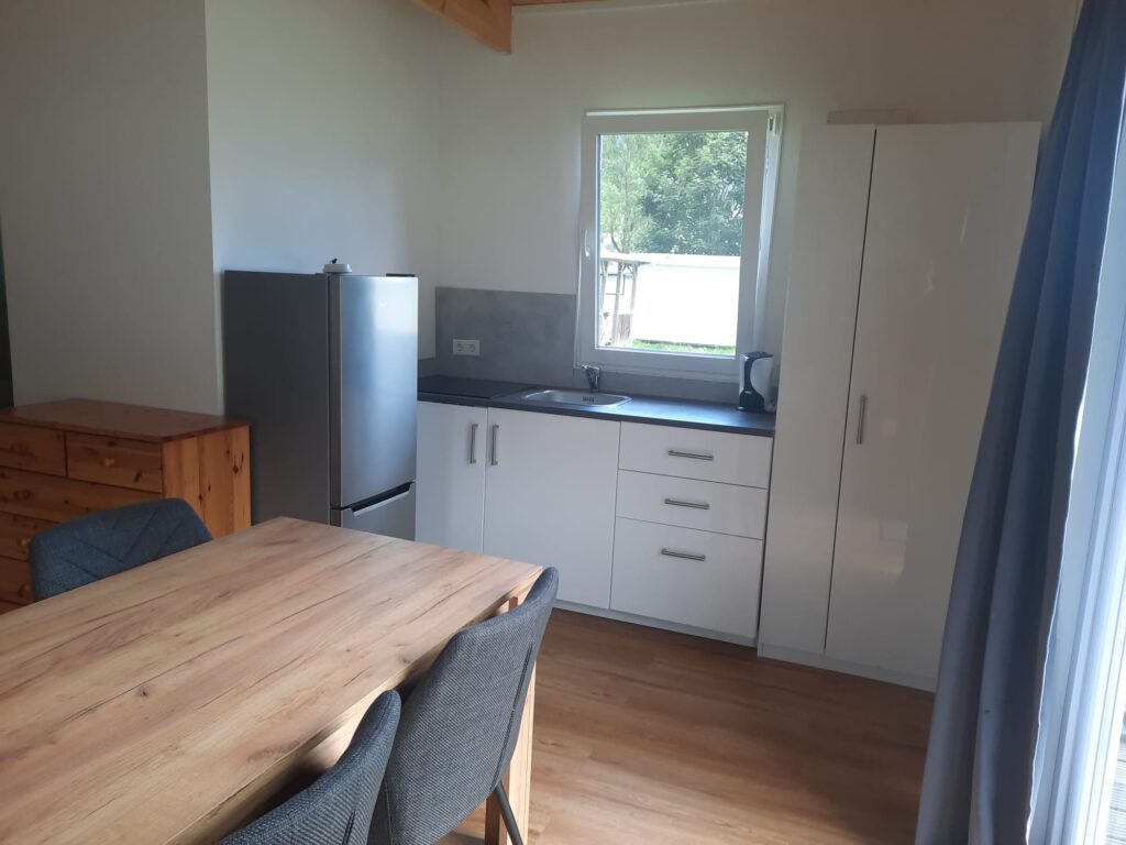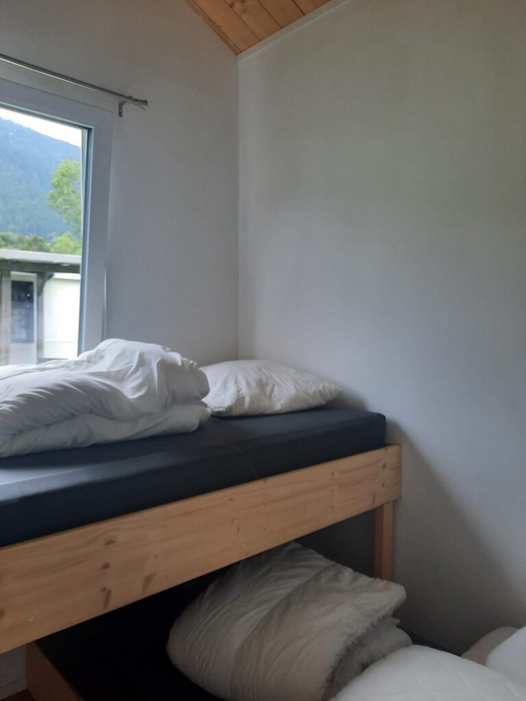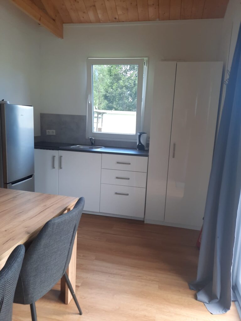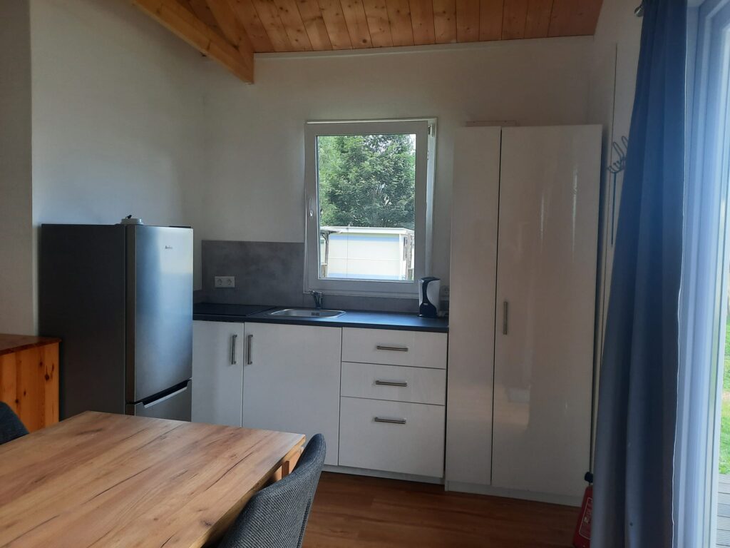 Dieses gemütliche Chalet für vier Personen bietet alles, was Sie für einen komfortablen Aufenthalt benötigen. Mit einer Größe von 7 x 5 Metern und einer Veranda von 3 x 5 Metern genießen Sie sowohl innen als auch außen ausreichend Platz. Das Auto kann direkt neben der Unterkunft geparkt werden, was den Aufenthalt besonders praktisch macht. Innen finden Sie ein Schlafzimmer mit Doppelbett und ein zweites Schlafzimmer mit zwei Einzelbetten. Die Küche ist komplett ausgestattet mit Induktionskochfeld, Mikrowelle und Kühl-Gefrierkombination, während das Badezimmer über Dusche, WC und Waschbecken verfügt. Bettdecken und Kissen sind vorhanden; Bettwäsche können Sie selbst mitbringen oder mieten. Das Chalet ist ein idealer Ausgangspunkt für einen entspannten Urlaub in grüner Umgebung.