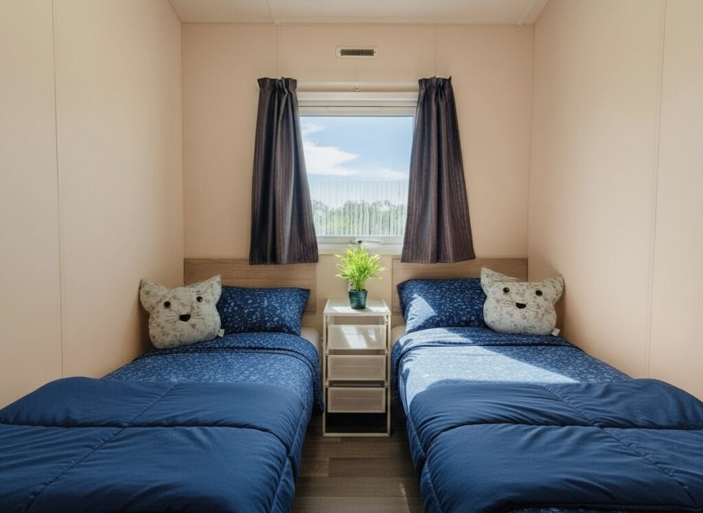 This accommodation at Roompot Beach Resort offers everything you’d expect from a holiday home. First of all, it accommodates up to 4 people. You’ll sleep in one of the two bedrooms — the first bedroom has a double bed, and the second bedroom has two single beds.