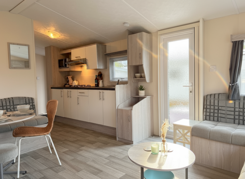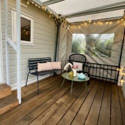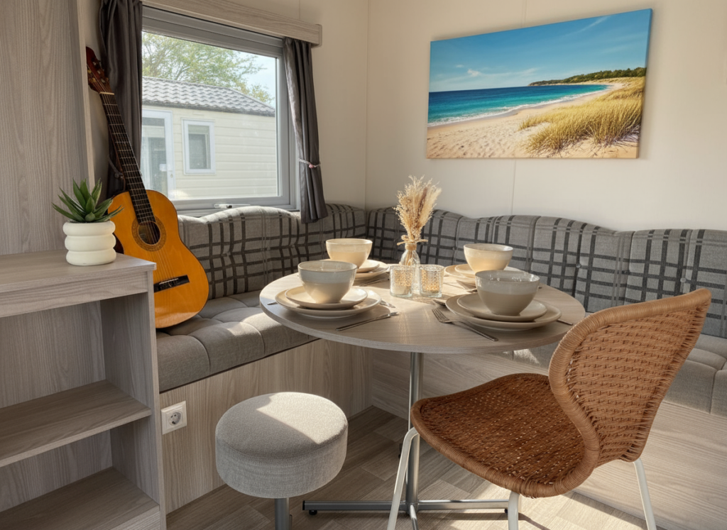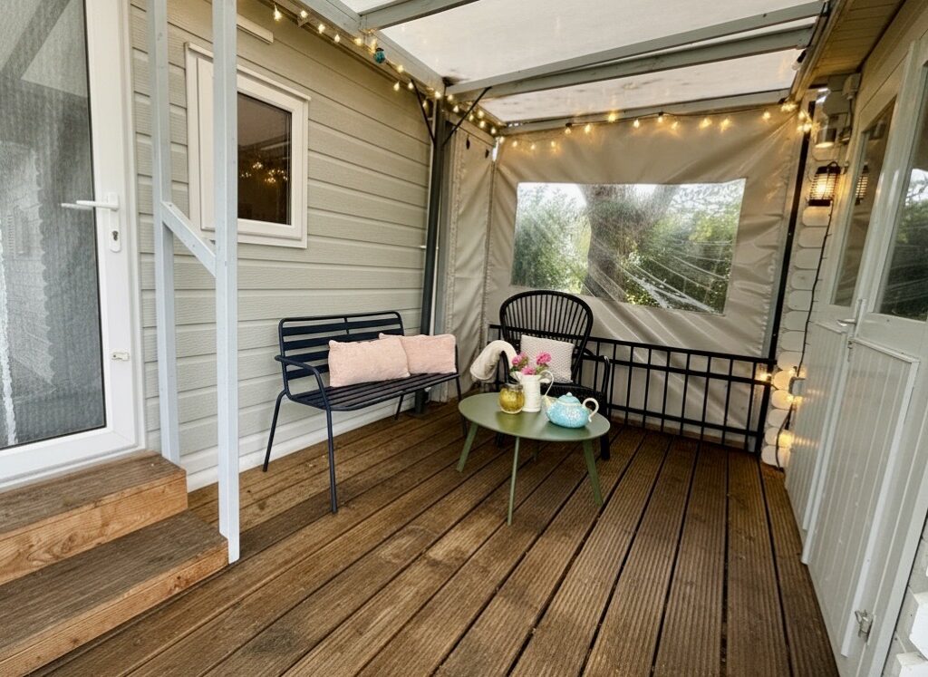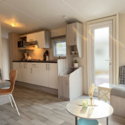 You can relax in and around the holiday park, but also in your own garden with a veranda and garden furniture, or indoors on the sofa, which offers plenty of room for everyone. The chalet also has a television.