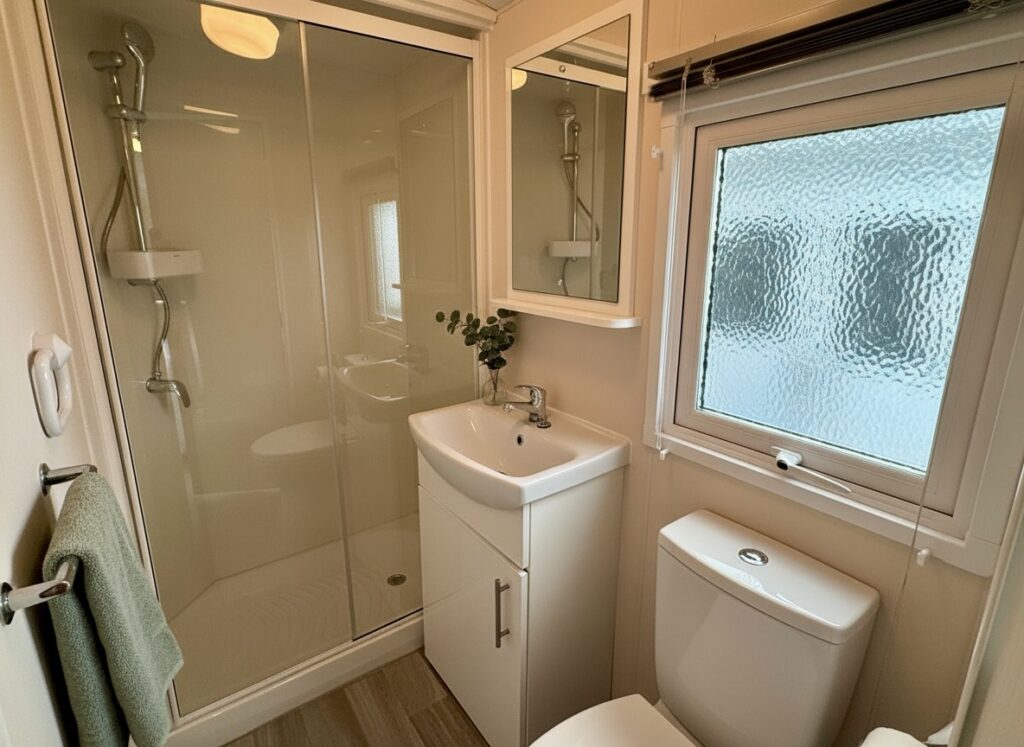 Finally, after a long day outdoors, it’s a pleasure to freshen up in your own bathroom, which, in addition to the shower, also has a sink and a toilet.