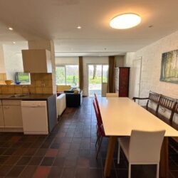 The bungalow is practical and stylishly furnished, with a bright living room overlooking the surrounding nature. The open kitchen is fully equipped with modern appliances, including a dishwasher, combination microwave, fridge/freezer and coffee maker. This allows you to enjoy delicious meals together in a cosy setting.