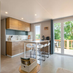 The holiday home features multiple bedrooms, a fully equipped kitchen, and a cozy living area where you can relax together. Outside, there is a private terrace with views of the greenery – perfect for breakfast in the sun or a relaxing evening with a drink.
