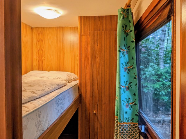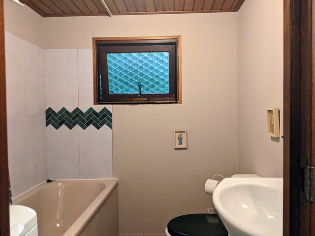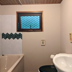 The chalet also features a bathroom with a shower, sink, and toilet – everything you need for a comfortable stay.