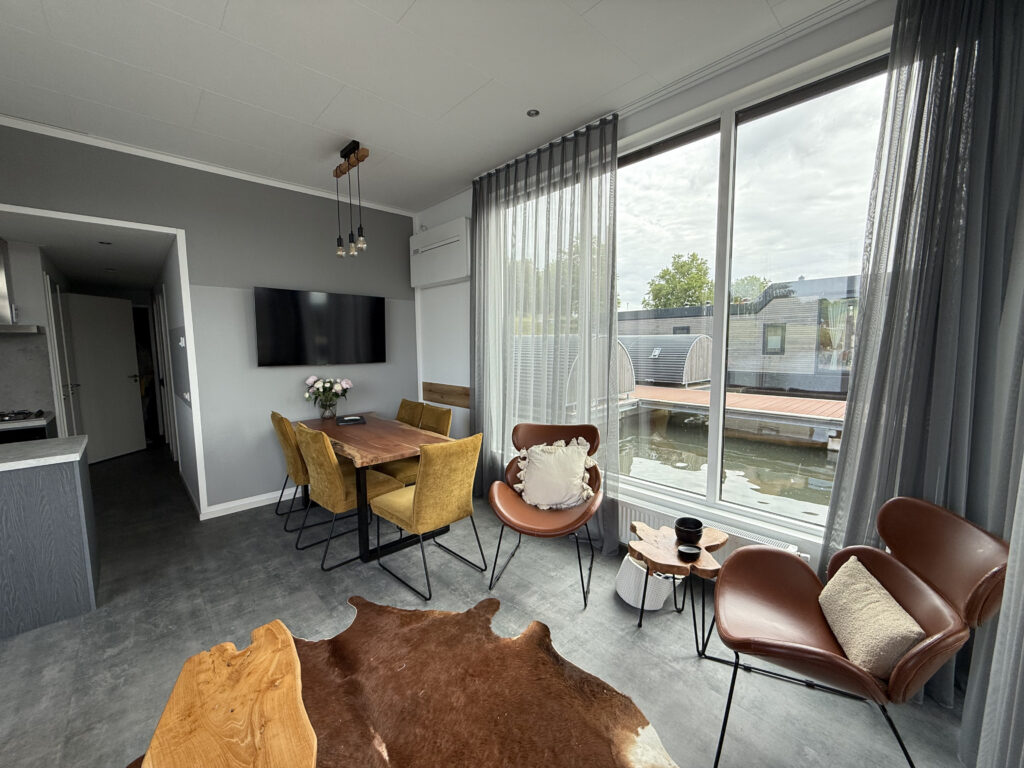 From the moment you arrive at holiday park De Maasterp in the charming Limburg village of Ohé en Laak, your holiday feeling begins. Here, right on the edge of the marina, you’ll find a one-of-a-kind floating villa that offers everything for a relaxing and unforgettable stay.
