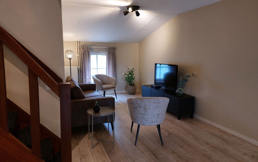 Inside, you’ll find a fully equipped accommodation with a cozy living room, practical kitchen, and sleeping arrangements that offer flexibility and comfort. Whether you’re enjoying a morning coffee before heading out, dining together after a long walk or bike ride, or relaxing in the evening, D’r Wesjzulder provides everything you need for a pleasant stay.