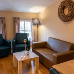Inside, you’ll find a tastefully furnished living space with comfortable seating, a fully equipped kitchen, and sufficient sleeping arrangements for couples or families. Whether enjoying a morning coffee before heading out, dining together after a walk in nature, or simply relaxing and soaking up the peace and space, ’t Honnesstel provides the perfect setting.