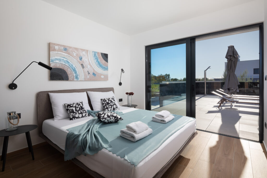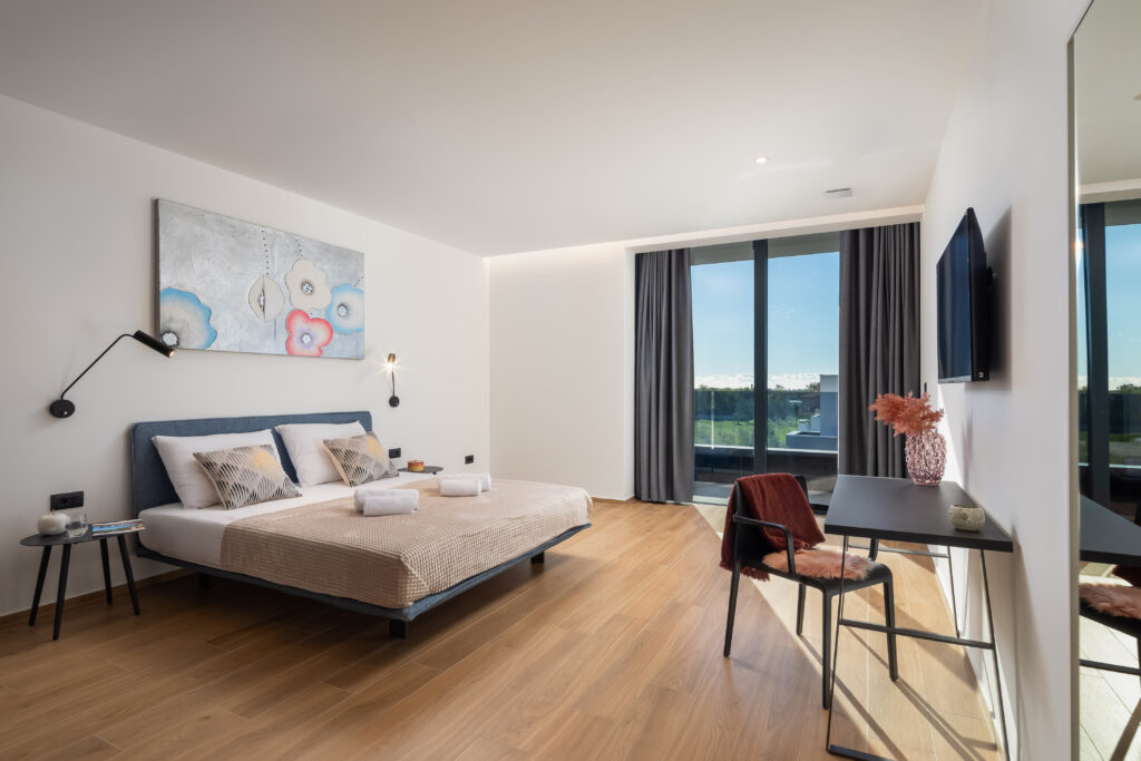 Villa Old Olive VI is a modern and stylish villa located in Salvela, close to Vodnjan. This newly built accommodation spans three floors and offers space for up to thirteen guests. With six bedrooms and six bathrooms, everyone enjoys comfort and privacy. The villa combines luxury, tranquillity and a relaxed atmosphere, making it ideal for families and groups of friends.