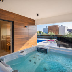 The villa features a private pool, a jacuzzi and a Finnish sauna, allowing you to unwind at any time of the day. The spacious balcony offers beautiful sea views. On the sun terraces and by the barbecue, you can enjoy the Mediterranean climate and the outdoor lifestyle. Inside, you will find a fully equipped kitchen and a comfortable living room. Guests travelling by car can make use of three private parking spaces.